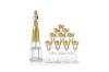 Juego de licorera y 10 copitas Art Decó en vidrio esmaltado y dorado.