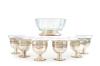Juego para cocktail o macedonia formado por 6 copas con soporte en plateado y recipientes en cristal y centro.