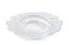 En vidrio tallado y parcialmente esmerilado. Perímetro ondulado con alero de cintas entrelazadas. Firmado.