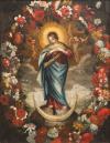 ESCUELA ESPAÑOLA. Segunda mitad del siglo XVII - La inmaculada entre corona de guirnaldas