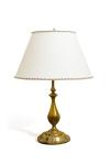 Lámpara de sobremesa con fuste de candelero en bronce dorado.