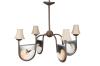 Lámpara de techo de cuatro luces en metal con decoración de caracolas en los brazos.