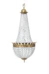 Lámpara de techo tipo globo de estilo Imperio. Montura en bronce dorado con decoración de cuentas de cristal y perímetro de palmetas. Remate de piña.