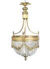 Con cuentas de cristal tallado, perímetro de corona de laurel, guirnaldas de flores y remate de piña en bronce dorado.