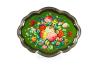 Lote de dos bandejas ovaladas en metal con decoración lacada de motivos florales de estilo ruso Zhostovo.