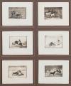 Lote de tres paneles con grabados de la tauromaquia de Goya, enmarcados. Diferentes tamaños.