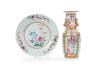 Lote en porcelana china formada por plato Familia Rosa con decoración esmaltada de motivos florales y pequeño jarrón familia rosa Canton, China, S.XIX.