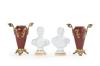 Lote formado por dos bustos en biscuit de Napoleón y Josefina con marcas de Limoges y dos pequeños jarrones estilo Luis XV en metal dorado y esmaltado en burdeos.