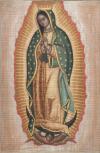 Probablemente hace alusión al manto de Juan Diego en el que se encontraba impresa la imagen de la Virgen.