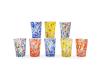 Juego de ocho vasos altos multiculor en vidrio soplado de Murano con la técnica de "millefiori".