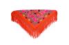 Con rica decoración bordada de grandes peonías y flores de vivo colorido, gran registro de macramé.