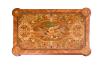 Mesa centro de estilo neoclásico en madera tallada cuajada de marquetería en maderas finas y teñidas formando motivos florales y vegetales. Cajón en cintura.