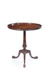 Mesita velador en madera de caoba tallada con decoración vegetal sobre patas de garra, s. XIX.