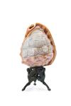 Original lámpara victoriana con concha natural tallada y base en hierro forjado, Inglaterra ppios. S. XX