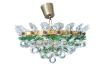 Lámpara de techo tipo plafón en metal dorado con decoración de esferas colgantes en cristal, hojas en verde y perímetro de palmetas.