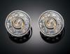 Diseño circular en oro amarillo y vistas en oro blanco, ambos de 18 K, con diamantes talla antigua.