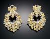 Realizados en oro amarillo de 18 k. Pendientes diseñados en dos cuerpos, el primero dispuesto de un triángulo invertido  con diamantes fancy yellow y brown en diferentes tallas: brillante, triángulo, marquise y cojín; engastados en garras. El segundo cuerpo en forma de corazón completa la estructura simétricamente, con un peso total aproximado de 11.37 ct.