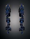 Realizados en plata, diseño vegetal en forma de hojas en zafiros engastados en garras, con un peso total estimado de 7,03 cts. Adornado con Pequeños brillantes, peso total aproximado 0,05 cts. Cierre a presión de oro amarillo de 18 k.