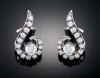 Pendientes realizados en oro blanco de 18 k, motivo en forma de espiral, emula una nota musical con diamante central de un peso aproximado de 1,01 ct, una estimación en color y pureza: G-H/ VS1.VS2 - VS2-SI1. La espiral en diamantes talla brillante engastados en garras con un peso total aproximado de  4,62 cts. Una estimación en color y pureza: H-I/VS2-SI1.