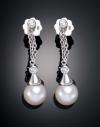 PENDIENTES LARGOS CON PERLAS CULTIVADAS Y DIAMANTES EN ORO BLANCO DE 18 K