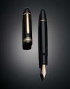 Pluma Montblanc, cuerpo en resina negra de gran tamaño, plumín en oro blanco de 14 k, logotipo blanco de estrella en la parte superior. Serie 4810