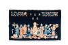 Pareja de alfombras chinas en lana con representación de figuras, motivos epigráficos y vegetales.