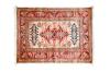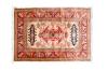 Pareja de alfombras persas en lana para pies de cama con decoración geométrica y vegetal estilizada.