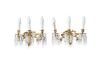 Pareja de apliques de tres luces en bronce dorado con decoración rameada y decoración de prismas colgantes en cristal facetado. Alguna falta.