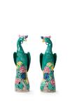Pareja de aves del paraiso en porcelana china siguiendo modelos de Compañia de Indias, S. XX