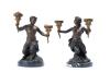 Originales fustes en forma de pareja de faunos. Sobre bases circulares en mármol negro veteado.