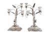 Pareja de candelabros de tres luces en plata española punzonada con marcas G. Junyet, Barcelona, S. XIX.