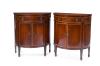 Pareja de consolas de media luna en madera de caoba y palma de caoba, S. XIX.