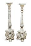 Pareja de hacheros en madera patinada en blanco.