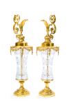 Realizadas en cristal tallado y bronce dorado. Decoración en las asas con roleos y acantos, y guirnaldas florales.