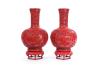 Pareja de jarrones en laca roja tallada, China, pp. S. XX.