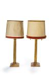Pareja de lámparas de sobremesa con fustes acanalados y capiteles corintios, sobre bases escalonadas cuadradas.