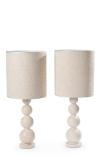 Pareja de lámparas de sobremesa de exclusivo diseño en mármol, Travertino, Italia, S. XX.