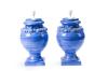 Pareja de lámparas de sobremesa en cerámica vidriada en azul.