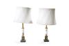 Pareja de lámparas de sobremesa ocn fuste en porcelana de estilo ecléctico.