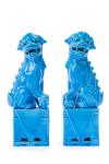 Pareja de leones de Foo en cerámica con esmalte azul turquesa, China s.XX