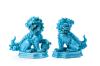 Pareja de leones de Foo en porcelana esmaltada color turquesa, Algora, España, S. XX.