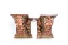 En madera tallada, policromada y marmorizada con decoración de hojas de acanto.