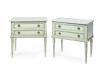 Pareja de mesillas estilo Luis XVI en madera pintada con tapas en mármol blanco.
