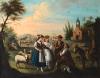 ESCUELA SEVILLANA. Siglo XIX - Pareja de paisajes de campesinos en el prado con el ganado