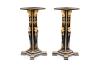 Realizadas en madera ebonizada y pintada con aplicaciones en bronce dorado. Decoración de palmetas, estípites y perímetros acanalados. Parte superior con tapa decorada con hojas y flores.