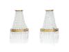 Pareja de pequeños apliques de estilo Imperio en dorado con decoración de cuentas de cristal y prismas facetados.