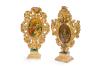 ESCUELA ITALIANA. Siglo XVIII - Pareja de relicarios procesionales con peanas originales.
