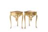 En madera tallada y dorada, sobre de mármol (uno roto). Patas en cabriolé, faldón recortado con rocallas y tornapuntas vegetales.
