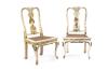 Pareja de sillas bajas de estilo oriental en madera lacada y pintada con detalles en dorado. Asientos de rejilla.