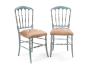 Pareja de sillas en madera pintada en azul con respaldo de balaustres.
